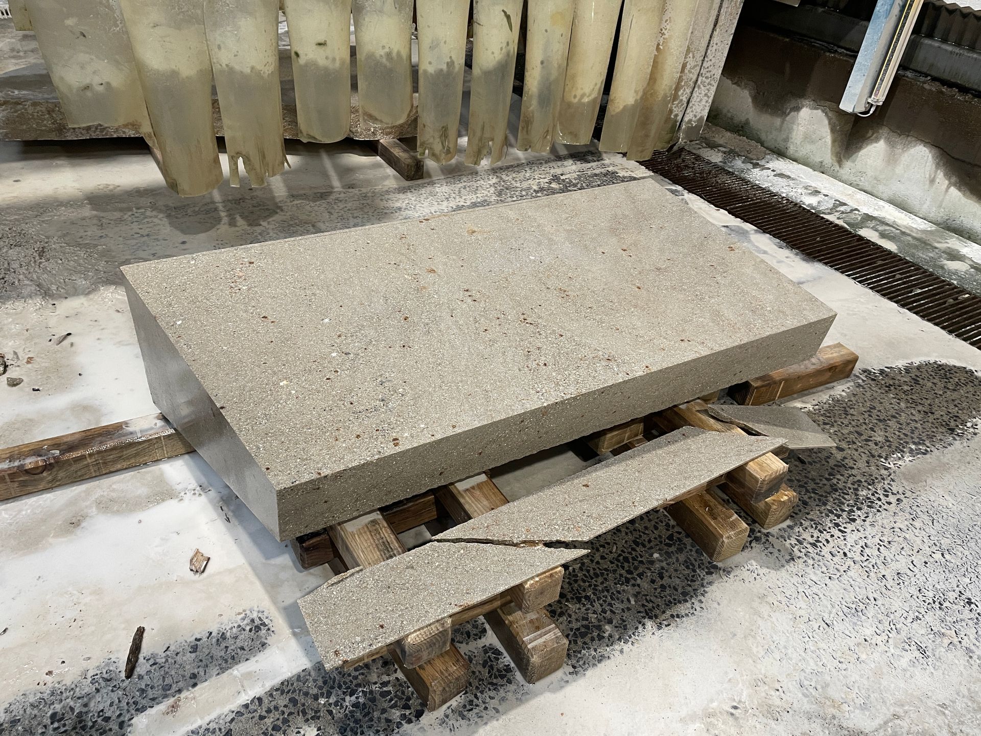 extrait des carrières de Blavozy et de la Chomette par nos ouvriers. Nos tailleurs de pierre se chargent de la découpe et des finitions à l’aide d’une scie à câble, de débiteuses. Ces machines nous permettent de recouper les pierres aux dimensions demandées, grâce à notre débiteuse à commande numérique nous avons la possibilité de réaliser des pièces plus précises. Nos finitions sont alors effectuées à la main avec des marteaux pneumatiques et des meuleuses.